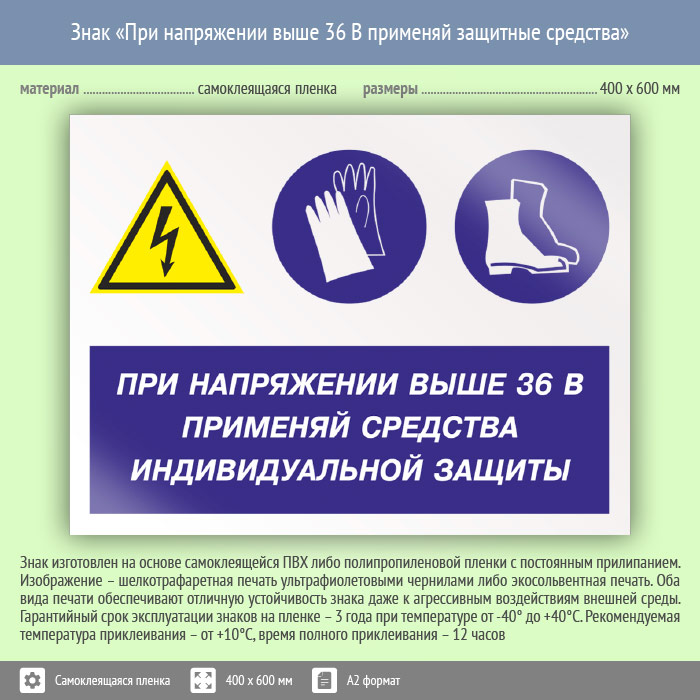 Знак «При напряжении выше 36 В применяй защитные средства», КЗ-71 (пленка, 600х400 мм) в Волгограде купить