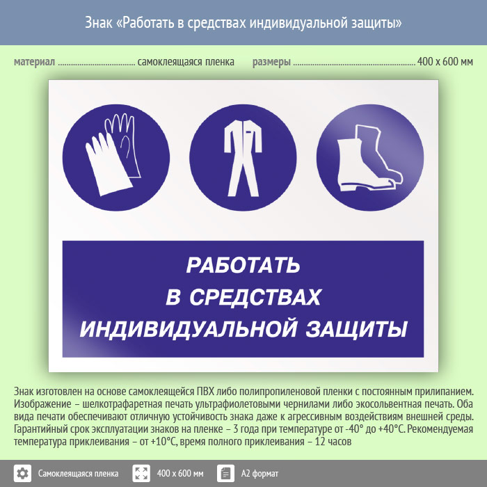 Знак «Работать в средствах индивидуальной защиты», КЗ-81 (пленка, 600х400 мм) в Волгограде купить