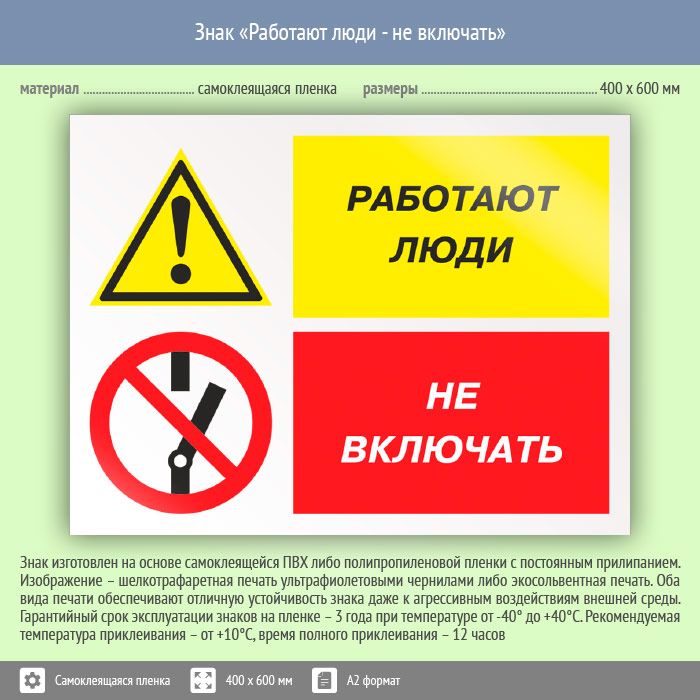 Знак «Работают люди - не включать», КЗ-83 (пленка, 600х400 мм) в Волгограде купить