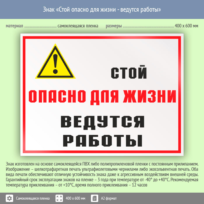 Знак «Стой опасно для жизни - ведутся работы», КЗ-86 (пленка, 600х400 мм) в Волгограде купить