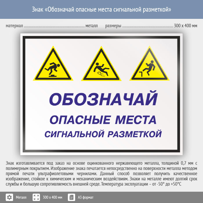 Знак «Обозначай опасные места сигнальной разметкой», КЗ-30 (металл, 400х300 мм) в Волгограде купить