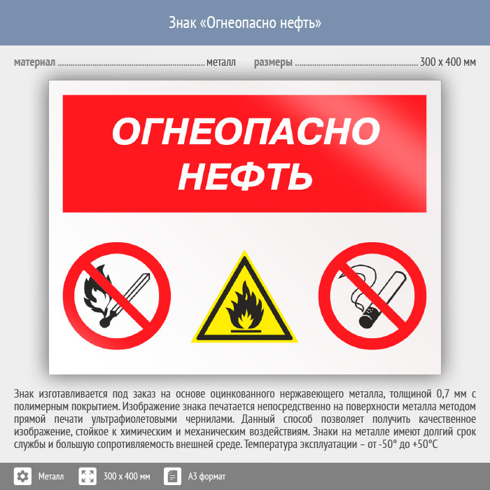 Знак «Огнеопасно нефть», КЗ-31 (металл, 400х300 мм) в Волгограде купить