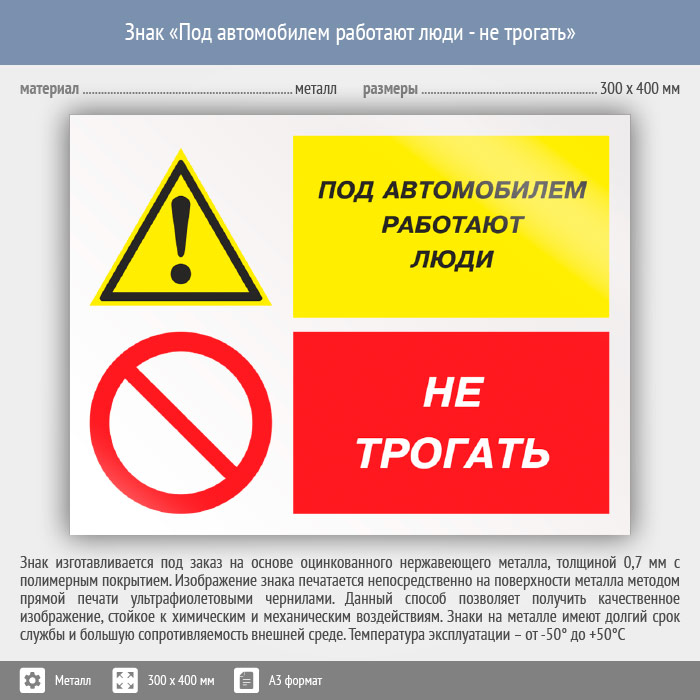 Знак «Под автомобилем работают люди - не трогать», КЗ-66 (металл, 400х300 мм) в Волгограде купить