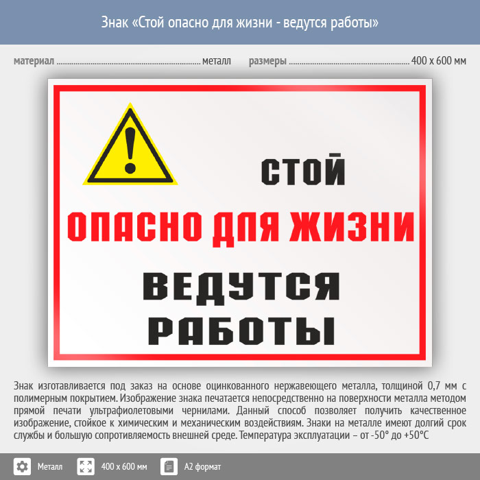 Знак «Стой опасно для жизни - ведутся работы», КЗ-86 (металл, 600х400 мм) в Волгограде купить