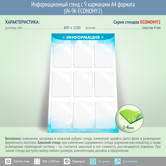 Информационный стенд с 9 карманами А4 формата (IN-9K-ECONOMY2) в Волгограде купить