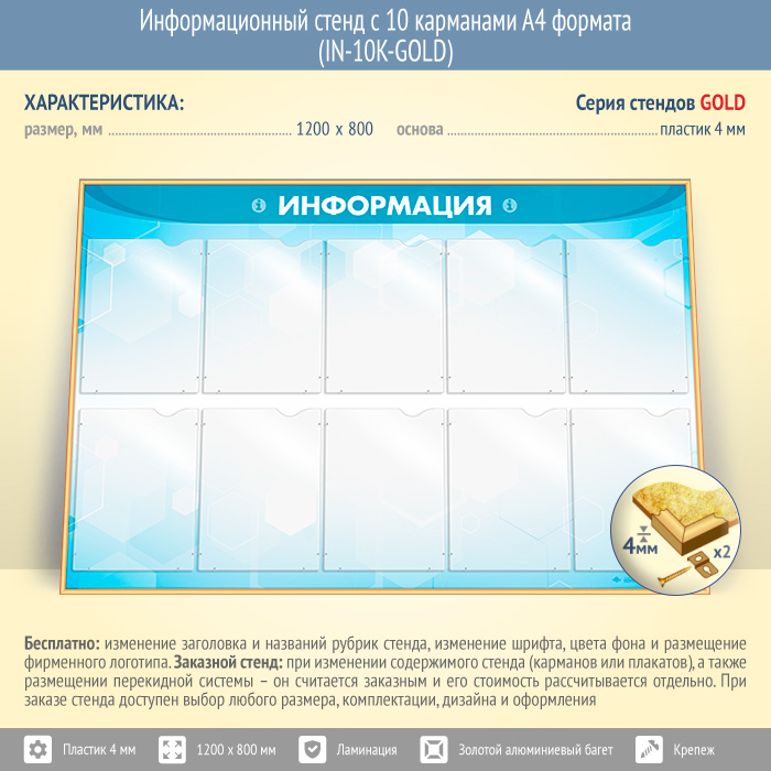 Информационный стенд с 10 карманами А4 формата (IN-10K-GOLD) в Волгограде купить