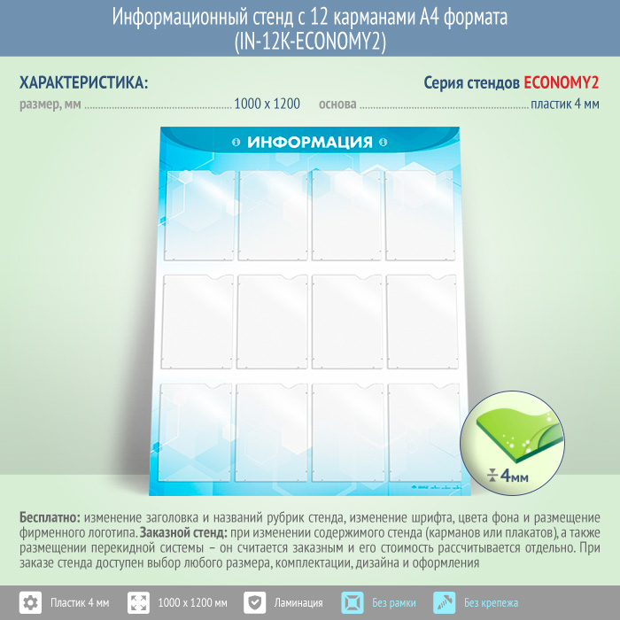 Информационный стенд с 12 карманами А4 формата (IN-12K-ECONOMY2) в Волгограде купить