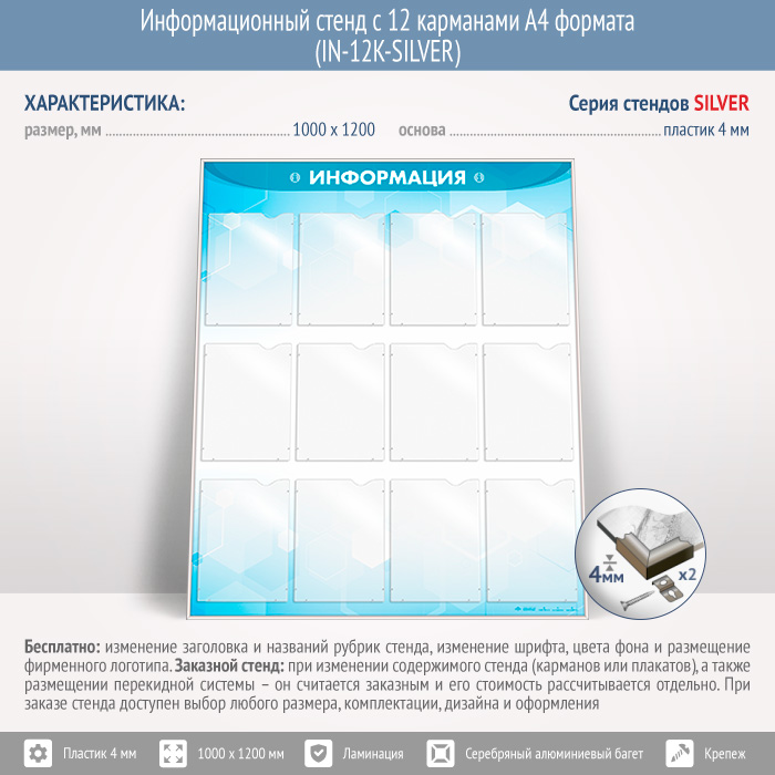 Информационный стенд с 12 карманами А4 формата (IN-12K-SILVER) в Волгограде купить