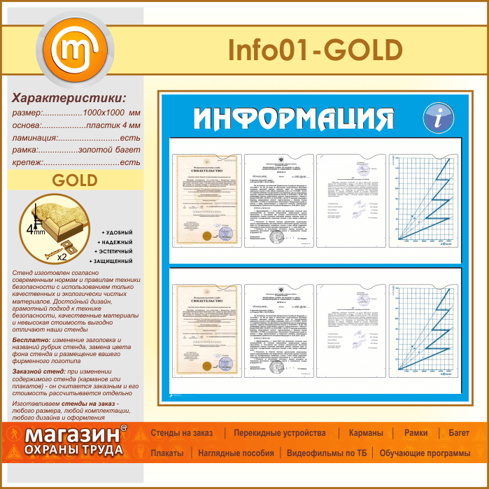 Стенд «Информация» с 8 карманами А4 формата (IN-01-GOLD) в Волгограде купить