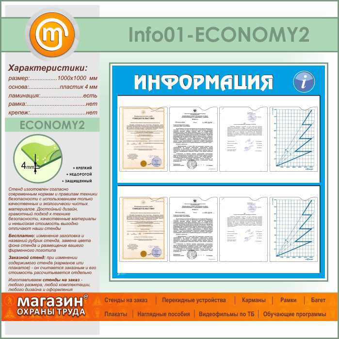 Стенд «Информация» с 8 карманами А4 формата (IN-01-ECONOMY2) в Волгограде купить