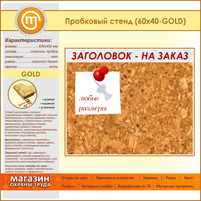 Пробковая доска с заголовком, 60х40 см (IN-06-GOLD) в Волгограде купить