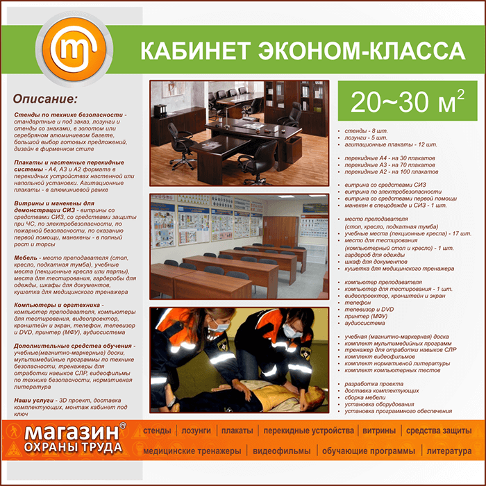 | Площадь кабинета: | 20-30 м2 |