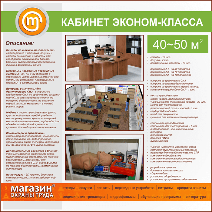 | Площадь кабинета: | 40-50 м2 |