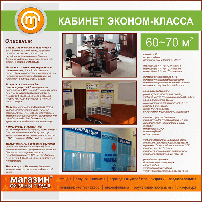 | Площадь кабинета: | 60-70 м2 |