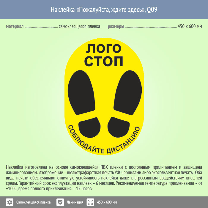 Наклейка на пол «Пожалуйста, ждите здесь», Q09 (пленка c ламинированием, 450х600 мм) в Волгограде купить
