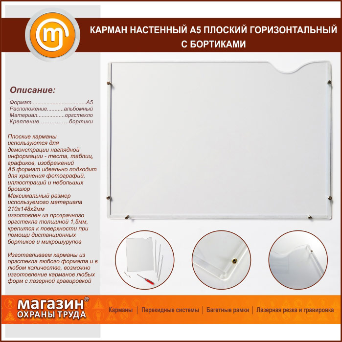 Карман настенный А5 плоский горизонтальный с бортиками в Волгограде купить