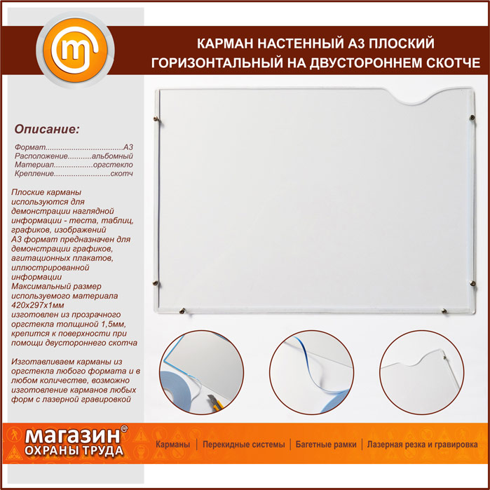 Карман настенный А3 плоский горизонтальный на двустороннем скотче в Волгограде купить