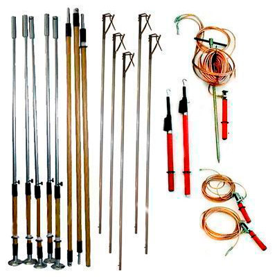 Комплект штанг для заземления ВЛ предназначен для заземления проводов отключенных ВЛ непосредственно с поверхности земли, а с указателями напряжения также для проверки наличия или отсутсвия напряжения на воздушных линиях