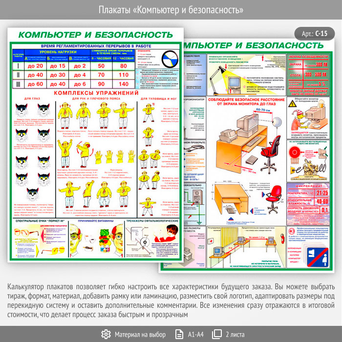 Плакаты «Компьютер и безопасность» (С-15, 2 листа) в Волгограде купить