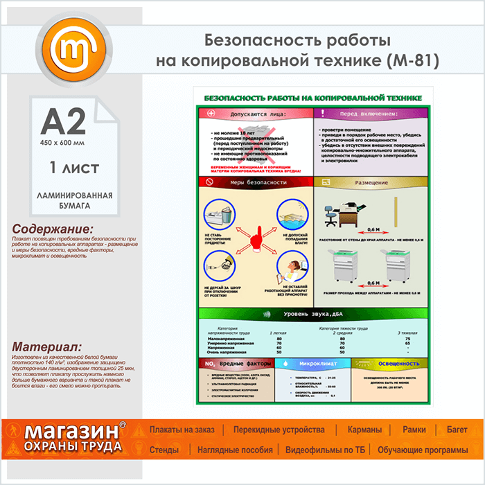 Плакат «Безопасность работы на копировальной технике» (М-81, ламинированная бумага, А2, 1 лист) в Волгограде купить