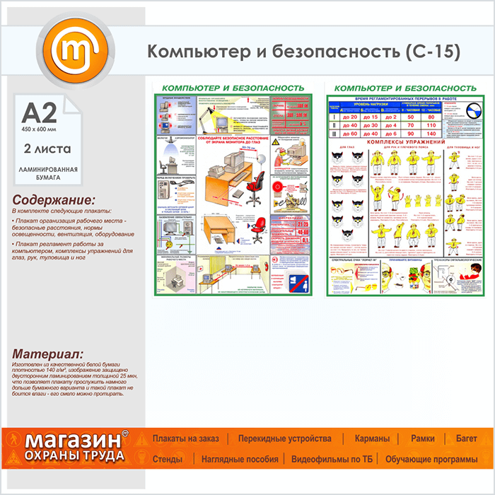 Плакаты «Компьютер и безопасность» (С-15, ламинированная бумага, А2, 2 листа) в Волгограде купить