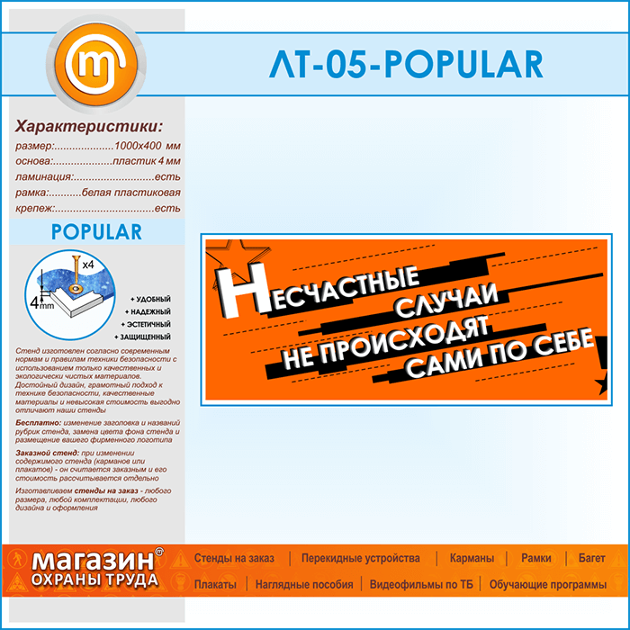 Предлагаем Вашему вниманию стенд с лозунгом «Несчастные случаи не происходят сами по себе»