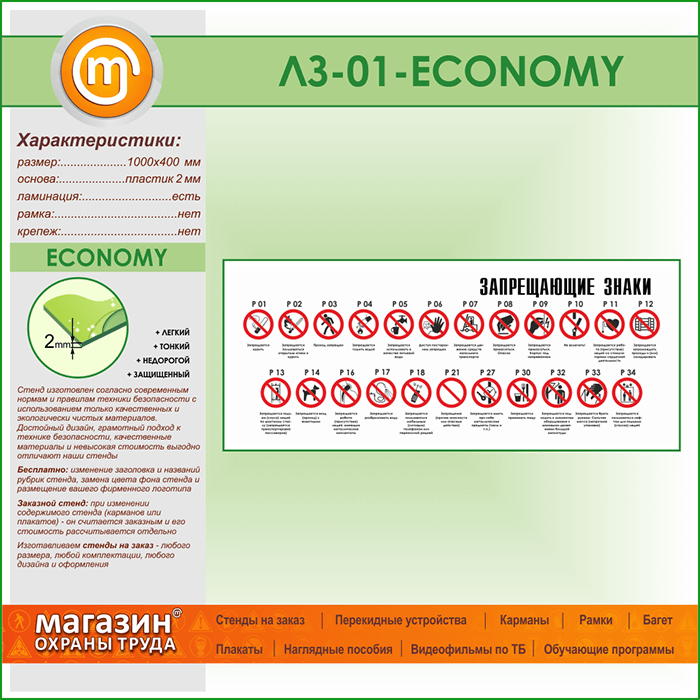 Стенд «Запрещающие знаки» (LZ-01-ECONOMY) в Волгограде купить