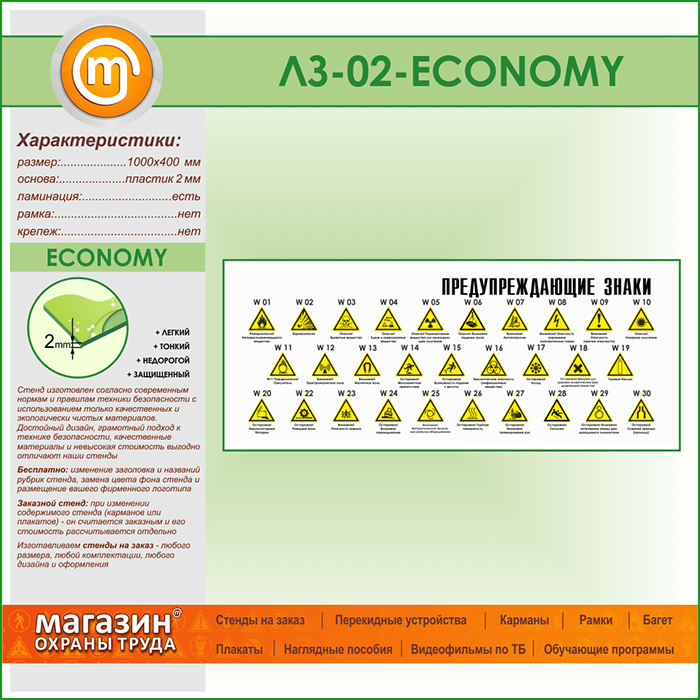 Стенд «Предупреждающие знаки» (LZ-02-ECONOMY) в Волгограде купить