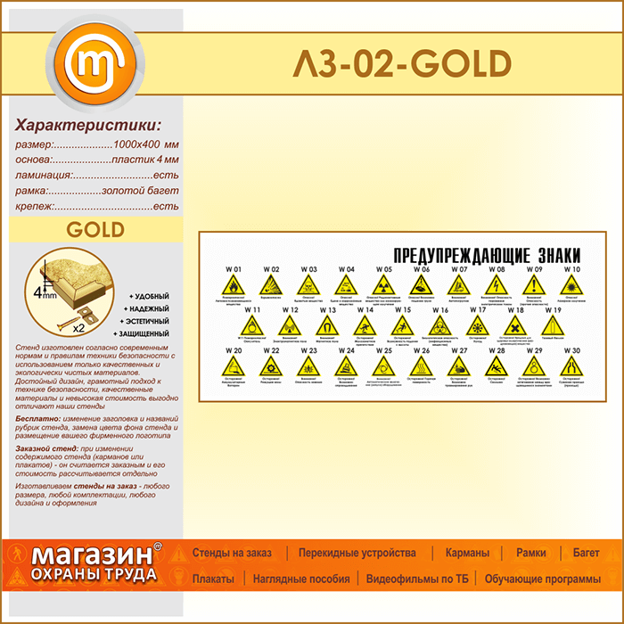 Стенд «Предупреждающие знаки» (LZ-02-GOLD) в Волгограде купить