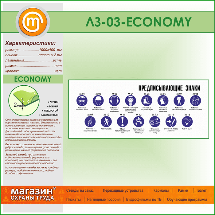 Стенд «Предписывающие знаки» (LZ-03-ECONOMY) в Волгограде купить