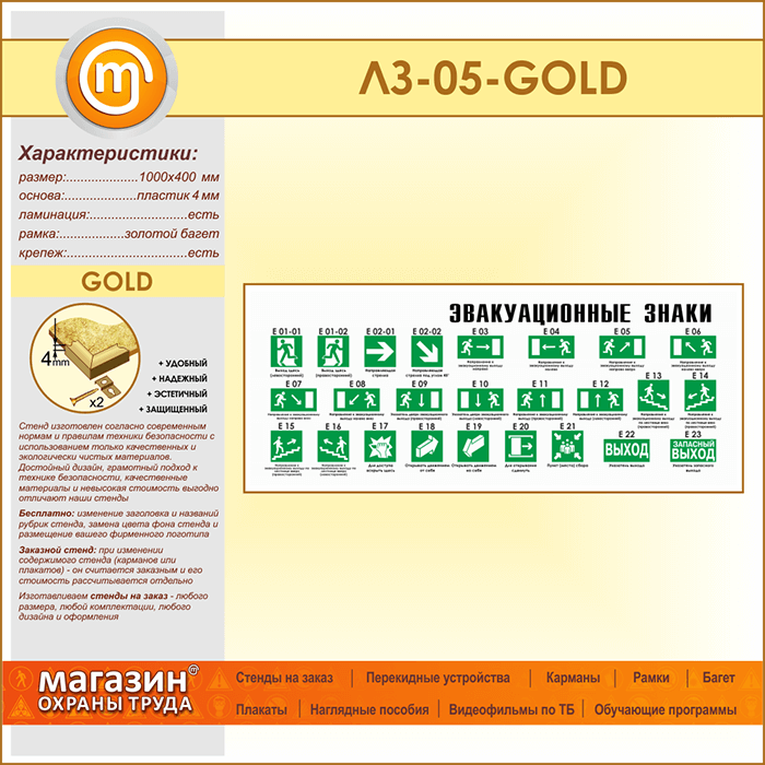 Стенд «Эвакуационные знаки» (LZ-05-GOLD) в Волгограде купить