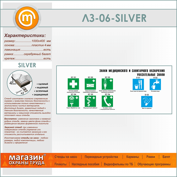 Стенд «Знаки медицинского и санитарного назначения. Указательные знаки» (LZ-06-SILVER) в Волгограде купить