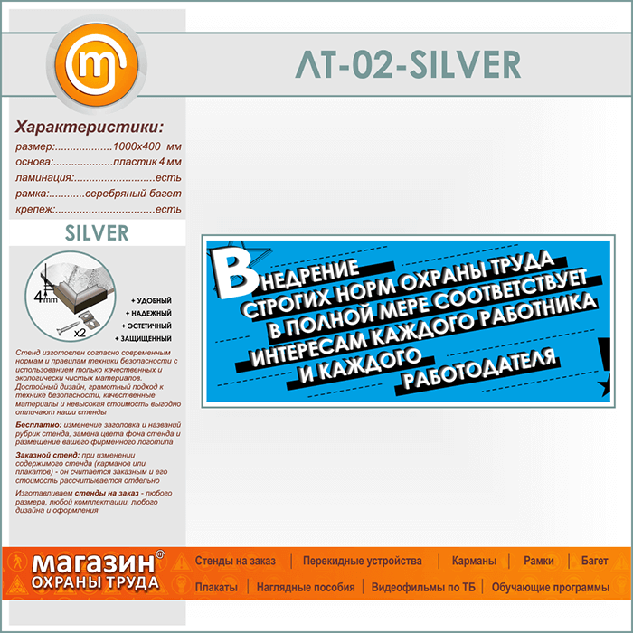 Лозунг «Внедрение строгих норм охраны труда...» (LT-02-SILVER) в Волгограде купить