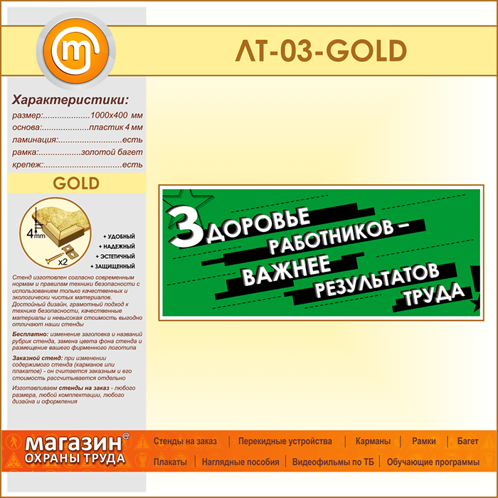 Лозунг «Здоровье работников - важнее результатов труда» (LT-03-GOLD) в Волгограде купить