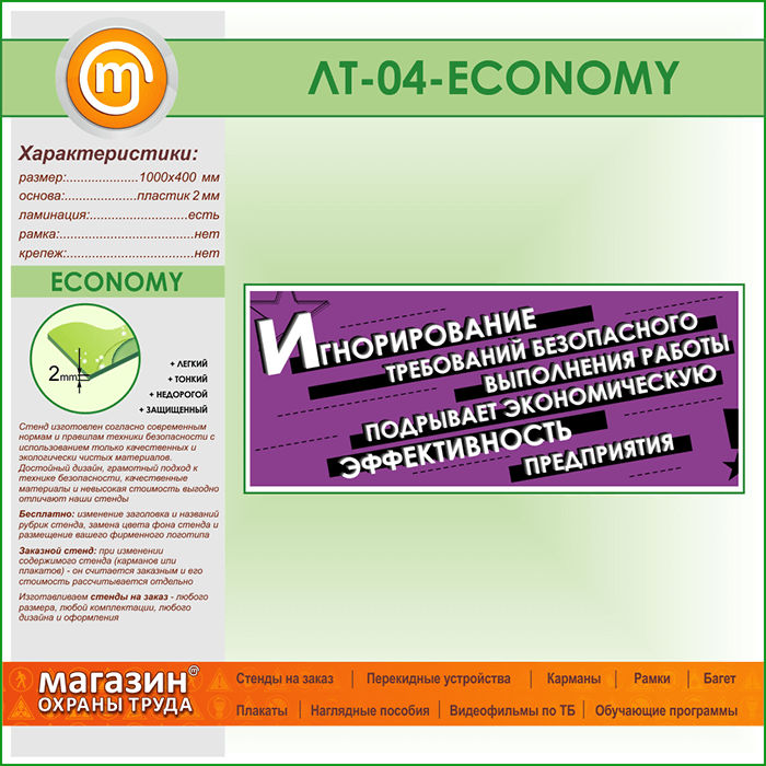 Лозунг «Игнорирование безопасного выполнения работы...» (LT-04-ECONOMY) в Волгограде купить