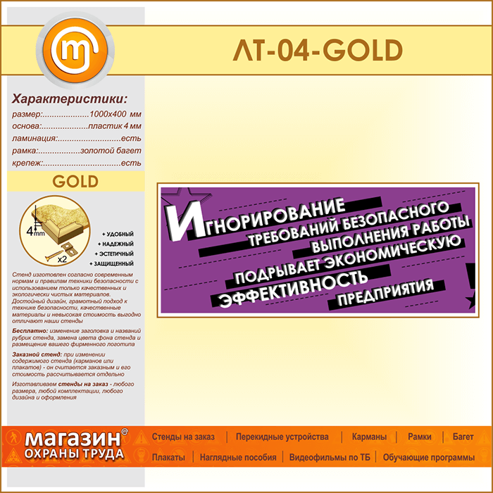 Лозунг «Игнорирование безопасного выполнения работы...» (LT-04-GOLD) в Волгограде купить