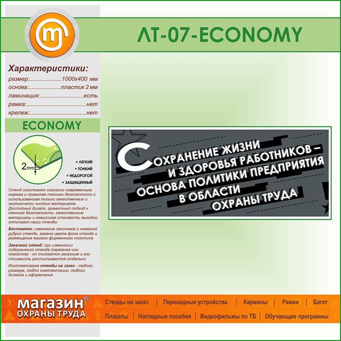 Лозунг «Сохранение жизни и здоровья работников...» (LT-07-ECONOMY) в Волгограде купить