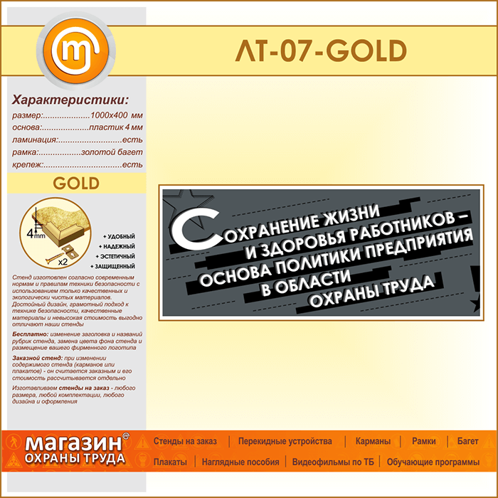 Лозунг «Сохранение жизни и здоровья работников...» (LT-07-GOLD) в Волгограде купить