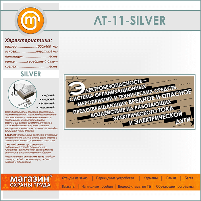 Лозунг «Электробезопасность - система мероприятий...» (LT-11-SILVER) в Волгограде купить