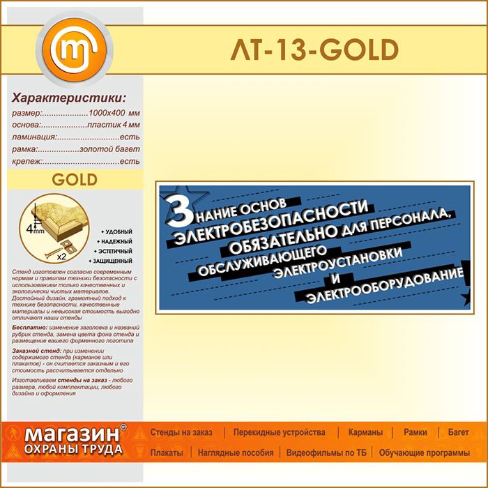 Лозунг «Знание основ электробезопасности обязательно...» (LT-13-GOLD) в Волгограде купить