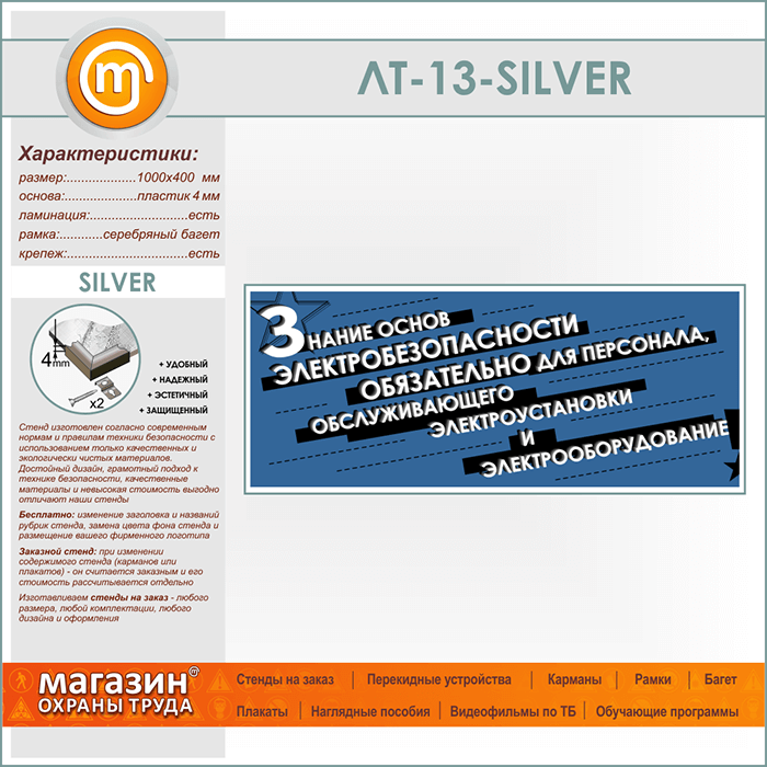 Лозунг «Знание основ электробезопасности обязательно...» (LT-13-SILVER) в Волгограде купить