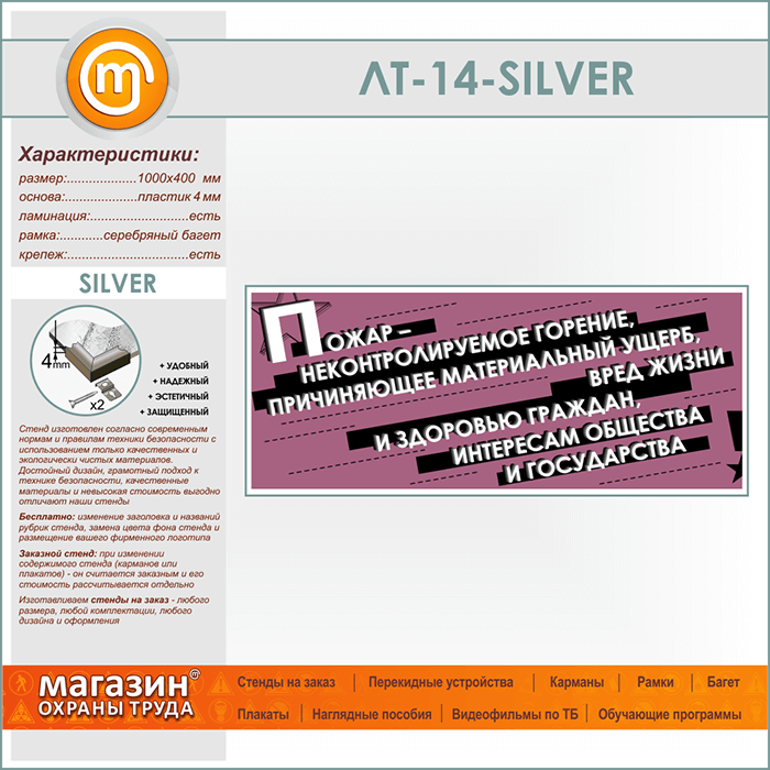 Лозунг «Пожар - неконтроллируемое горение...» (LT-14-SILVER) в Волгограде купить