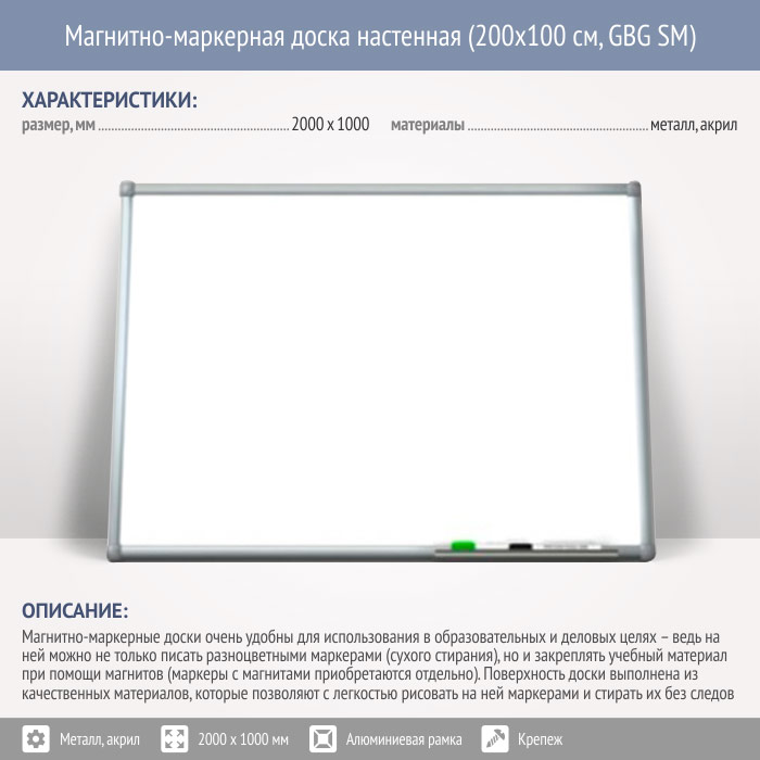 Магнитно-маркерная доска настенная (200x100 см, GBG SM) в Волгограде купить