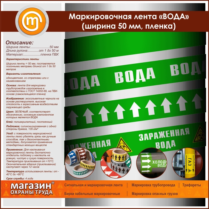Маркировочная лента «ВОДА» (ширина 50 мм, самоклеящаяся плёнка) в Волгограде купить