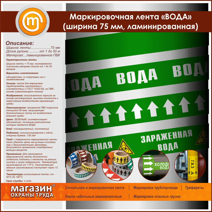 Маркировочная лента «ВОДА» (ширина 75 мм, самоклеящаяся плёнка с ламинированием) в Волгограде купить