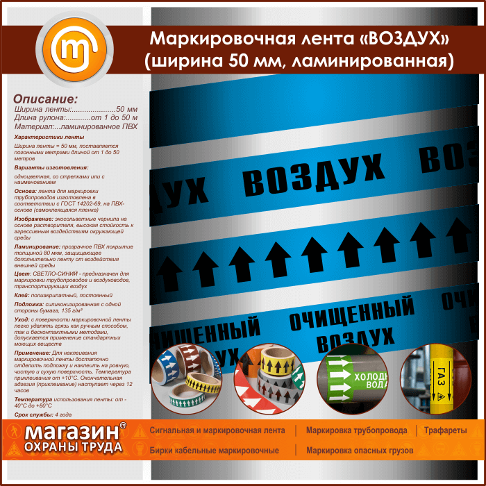 Маркировочная лента «ВОЗДУХ» (ширина 50 мм, самоклеящаяся плёнка) в Волгограде купить