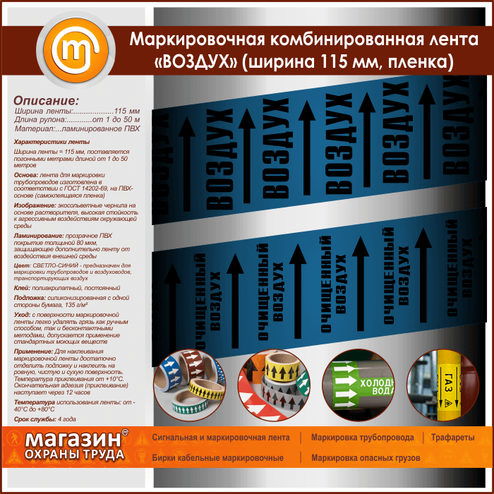 Маркировочная комбинированная лента «ВОЗДУХ» (ширина 115 мм, самоклеящаяся плёнка с ламинированием) в Волгограде купить
