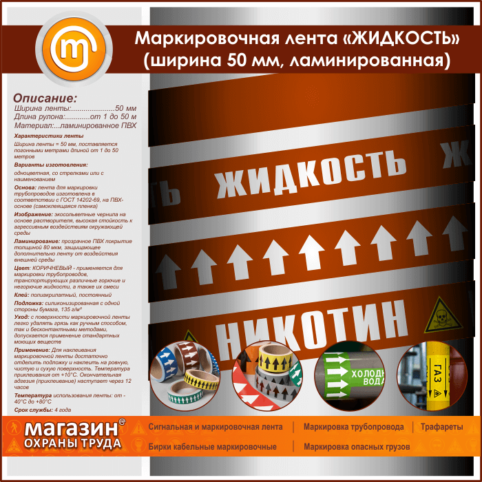 Маркировочная лента «ЖИДКОСТЬ» (ширина 50 мм, самоклеящаяся плёнка) в Волгограде купить