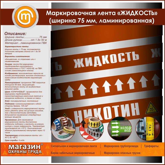 Маркировочная лента «ЖИДКОСТЬ» (ширина 75 мм, самоклеящаяся плёнка) в Волгограде купить