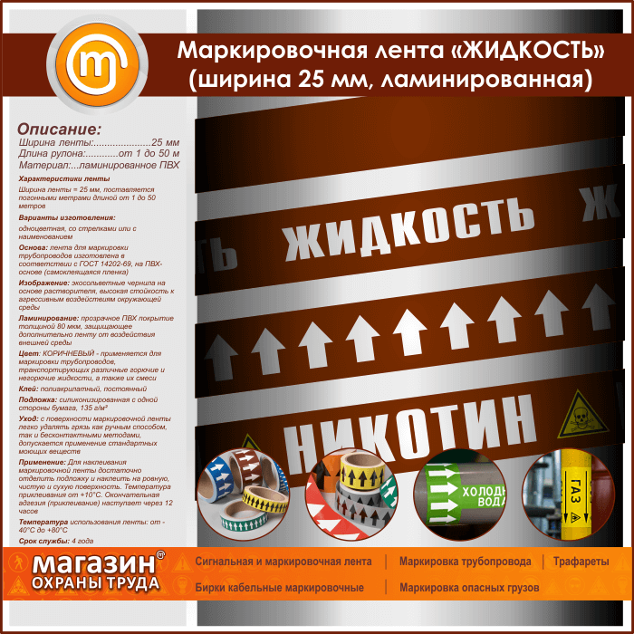 Маркировочная лента «ЖИДКОСТЬ» (ширина 25 мм, самоклеящаяся плёнка с ламинированием) в Волгограде купить